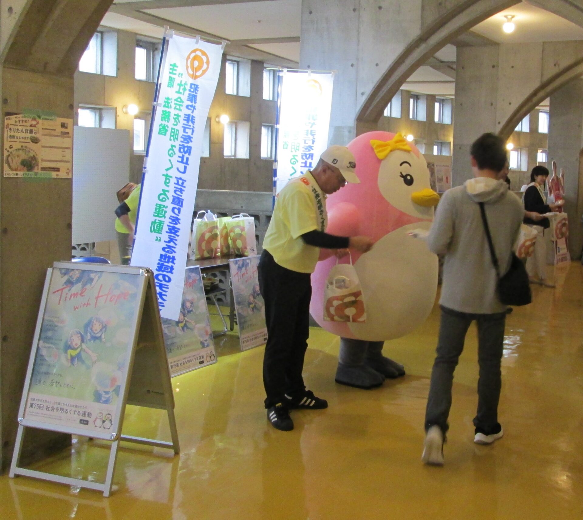 秋田市CNAアリーナにおいて、バスケットボール男子(B1)秋田ノーザンハピネッツの試合があり、社明広報活動を行い、ブースターに啓発グッズを配布しました。2025.10.18